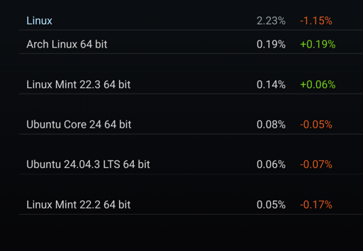 FirmDistribution@lemmy.world to Linux@lemmy.ml · 11 hours agoSteam hardware survey for February 2026. What happened? Why did it lose such a big percentage?lemmy.worldimagemessage-square18linkfedilinkarrow-up182arrow-down13