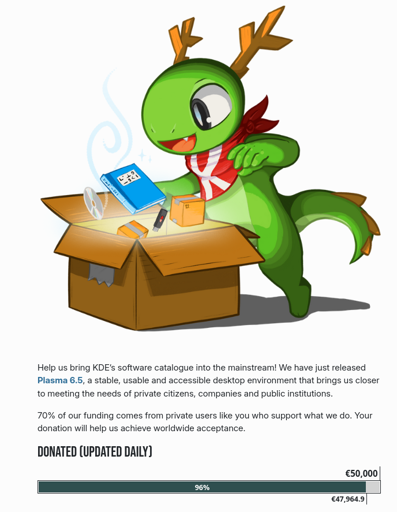 arrow-up1260arrow-down1imageKDE is raising money. We are almost there.plus-squarelemmy.worldhikep@lemmy.world to Linux@lemmy.ml · edit-26 days agomessage-square0linkfedilink