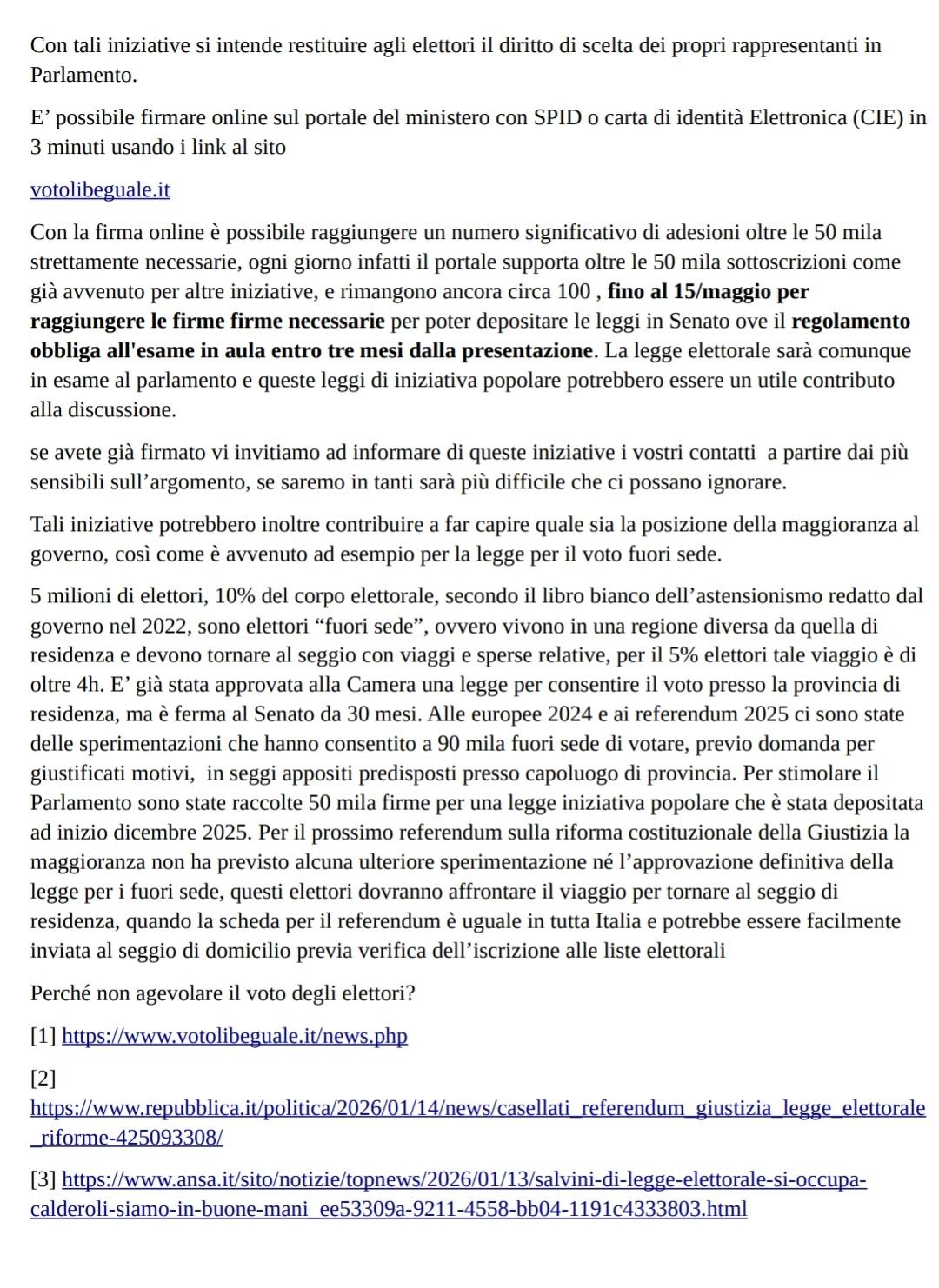 firmate anche per difendere il vostro voto, si vota al massimo tra 18 mesi per le politiche, e il diritto negato da 20 anni degli elettori di indicare da chi essere rappresentati in Parlamento. Sostenete e informate su 3 leggi iniziativa popolare per modifica #leggeelettorale